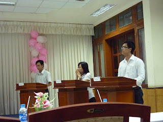 Chia sẻ về chiến thắng của mình, không dấu được nụ cười rạng rỡ hạnh phúc trên khuôn mặt, bạn Thanh Tài vui vẻ nói: “Mình thực sự rất vui và chắc tối nay không ngủ được. Nhờ những giờ học được tổ chức theo kiểu tọa đàm bằng tiếng Anh như thế này ở trên lớp, cũng như kinh nghiệm tiếp xúc với giáo viên nước ngoài nhiều mà mình có được sự tự tin trong buổi tối ngày hôm nay. ^^ Còn về dự án FOREX của mình dự kiến sẽ được mình cùng các bạn NT1 tổ chức vào khoảng đầu tháng 10 tới. Hy vọng được gặp lại các bạn.”